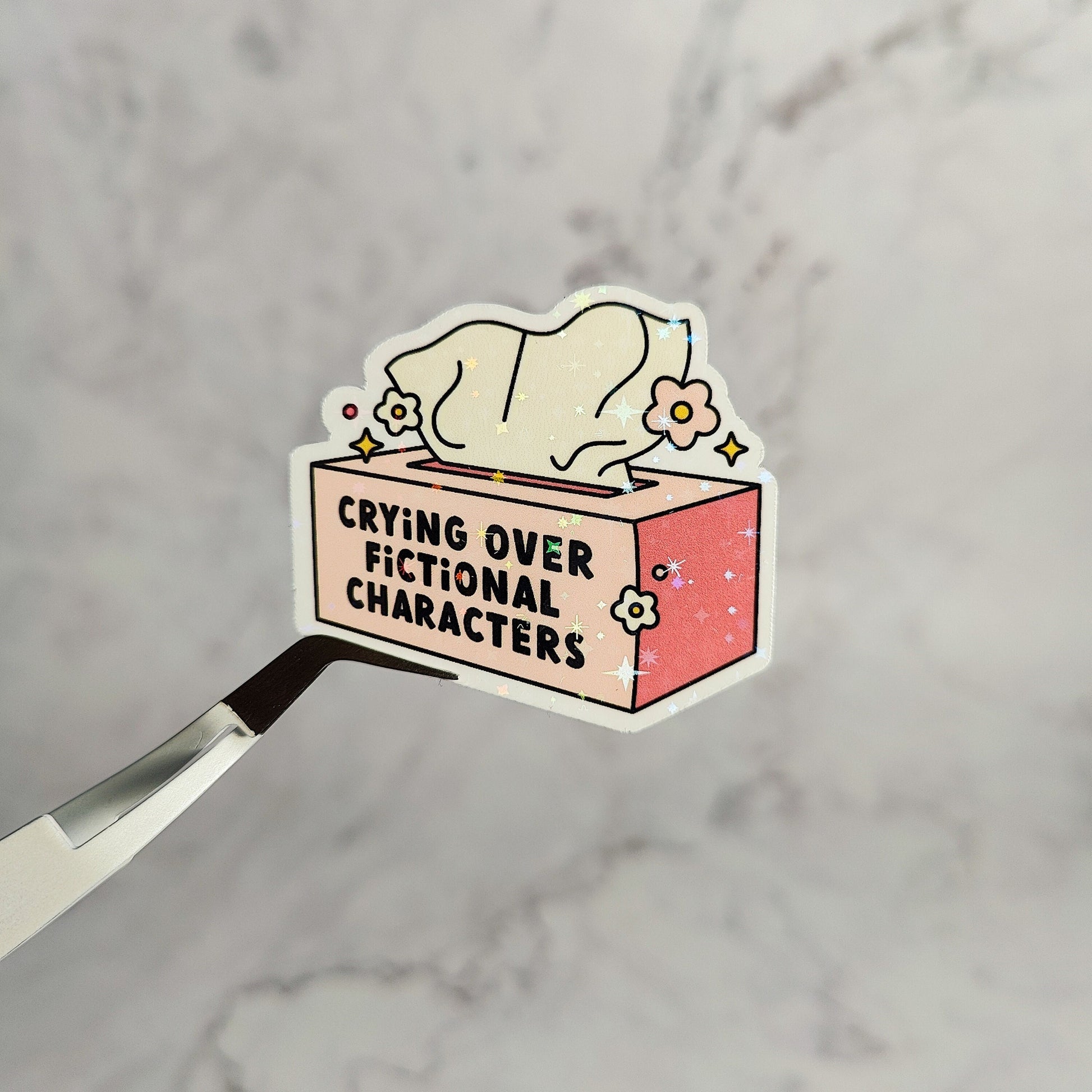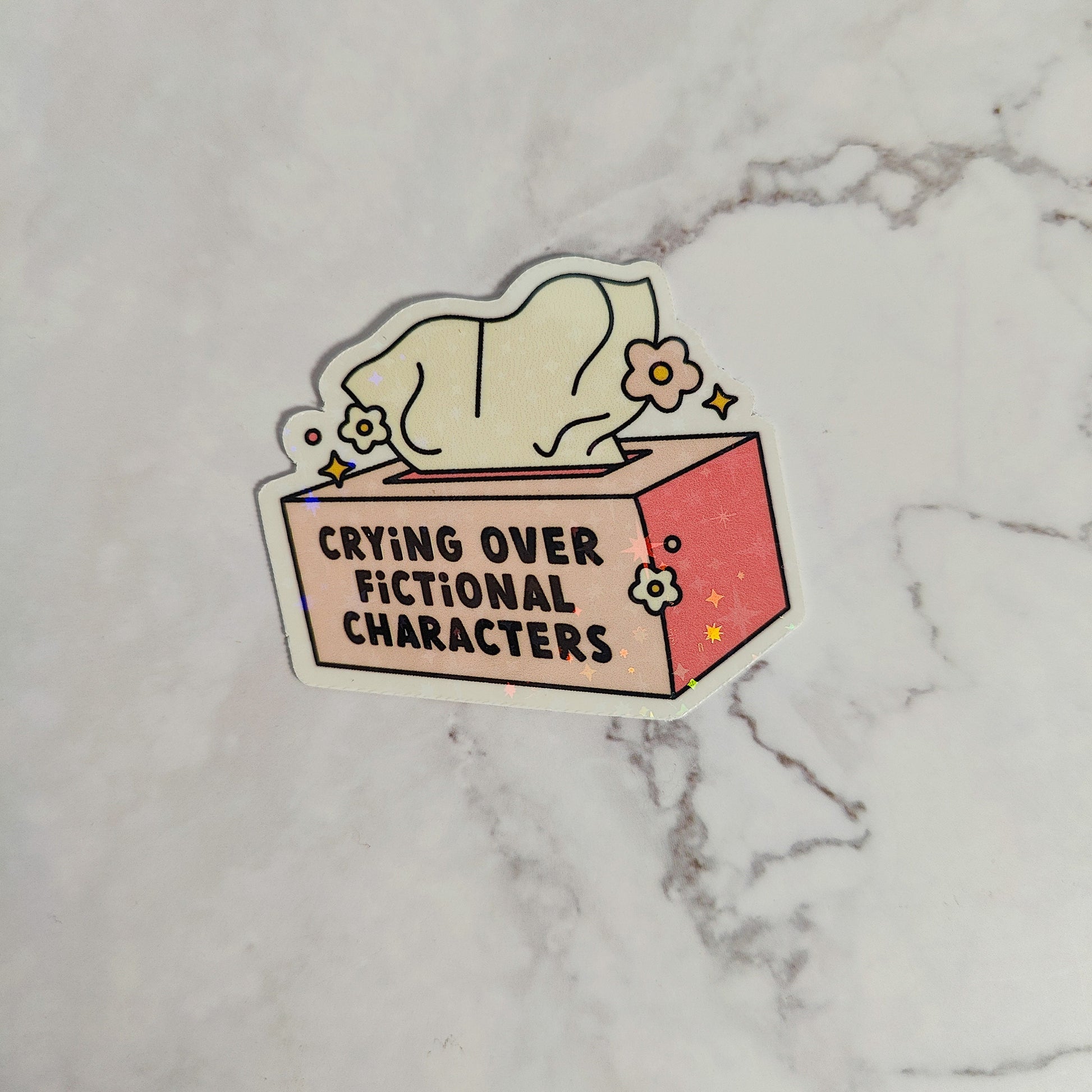 Crying Over Fictional Characters Tissue Box Holographic Sticker